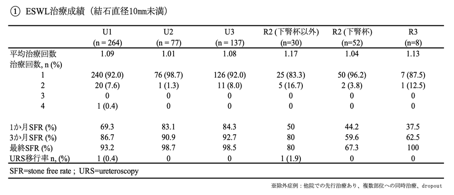 2023年度 ESWL(体外衝撃波結石破砕術)の治療成績